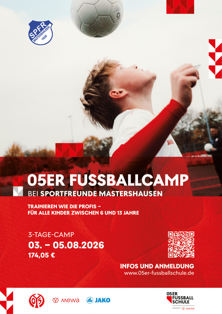 Vom 03. bis 05. August 2026 gastiert das beliebte 05ER Fußballcamp des 1. FSV Mainz 05 bei den Sportfreunden Mastershausen.